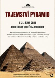 Celý říjen budeme v Archeoparku Chotěbuz-Podobora věnovat pyramidám. Čeká na vás zábavná vzdělávací hra o drobné ceny. Určitě se zastavte.